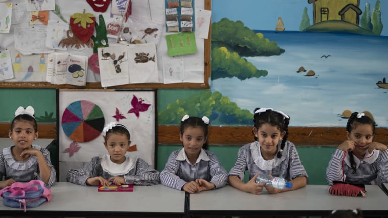 Girls sit inside a classroom at an UNRWA school during the first day of a new school year in Gaza City this week.