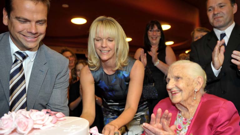 Elisabeth Murdoch with her grandmother Dame Elisabeth and brother Lachlan in 2012.